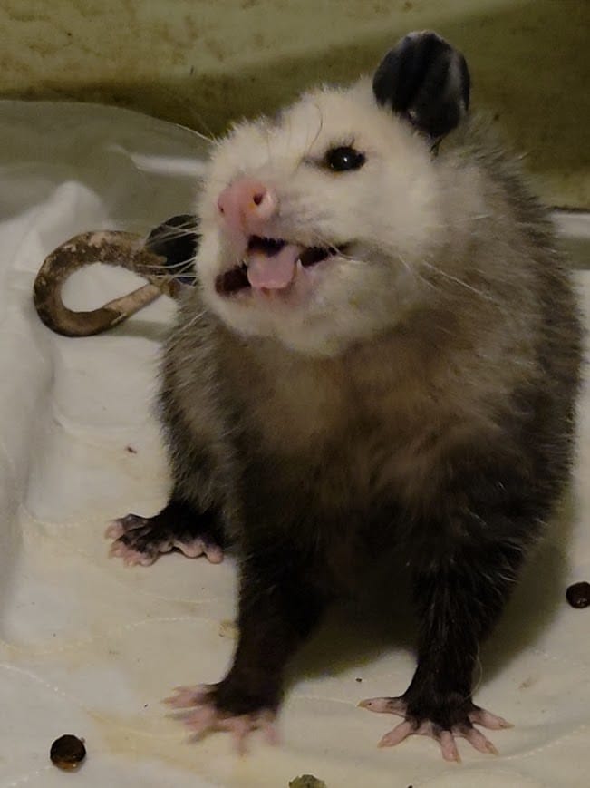 Calia spent weeks here getting bigger and learning how to be a Real Opossum.