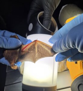 The groups I went out with netted 3 bats in 3 nights, but others netted up to 22! The total netted over 3 nights at 30 sites was around 180. The bats were of diverse species including Seminole, Red, Yellow, Big brown, and Brazilian freetail, also known as Mexican freetail. The bats are unharmed and handled by experienced bat biologists wearing personal protective equipment and following standardized protocol. Data collected is only useful if done properly and following the same guidelines and parameters. Otherwise as compelling as it may be, it can’t be used.
