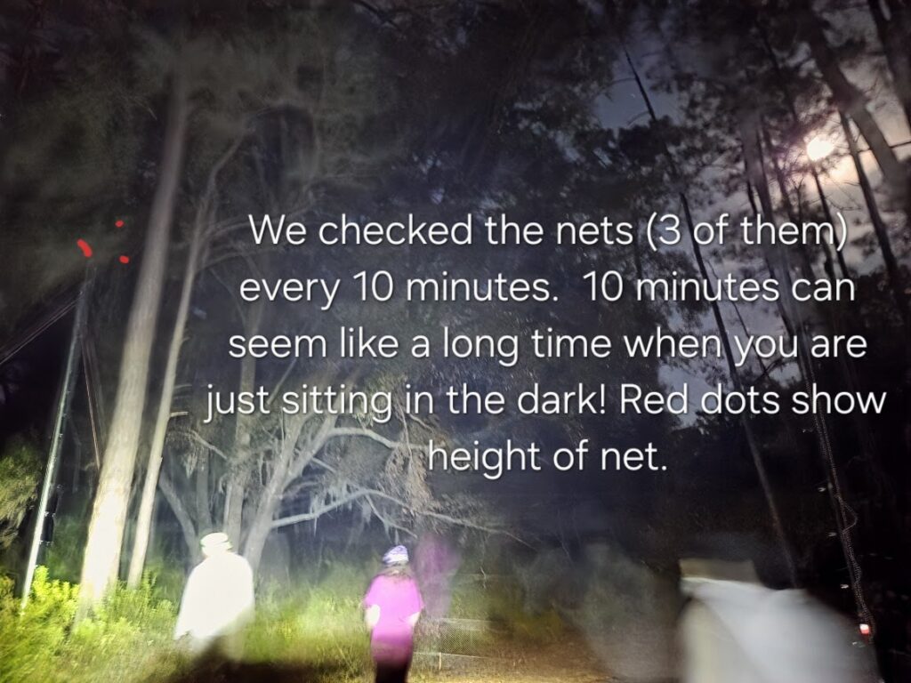 Besides bats, we saw a wide range of other coastal dwelling species. Several birds were caught including the ill-tempered Cardinal, and a Hermit thrush, and released, as well as flying squirrels.
