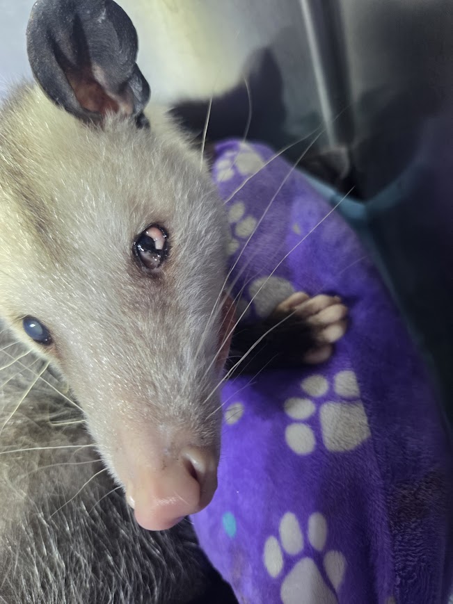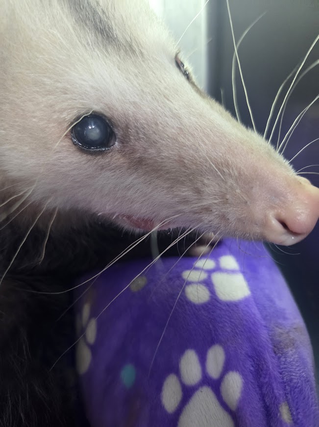 Luckily for her, this adult female opossum was brought to me right before the temperatures are set to plunge into the mid 20s. Jennifer had seen her out in the daytime for many days. She had a routine and stuck to it. Thinking she was blind and perhaps injured, she took the time to get in touch with me and bring her to me.