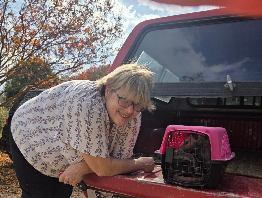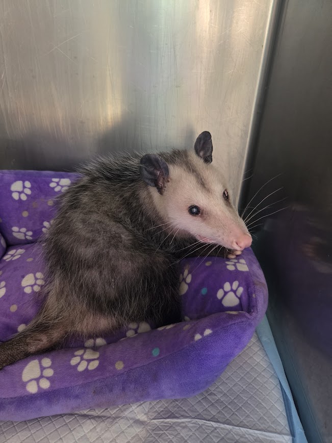 A cold snap is headed our way early this week so I am busy setting up radiant heat panels and adding pine straw to the outside enclosures. The one adult opossum, Sarah, will be brought inside temporarily. I don’t think she will mind.